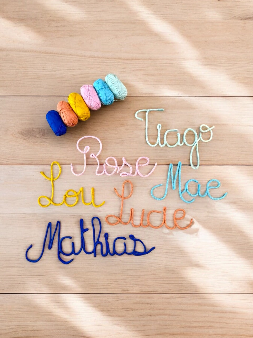 • Couronne macramé avec pompons et prénom – décoration murale enfant.